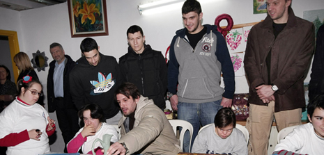 Zihinsel engelli çocuklarla bir araya gelen ve onların eğitim gördüğü sınıfları gezen lacivert-beyazlılar, yetkililerden de yapılan çalışmalarla ilgili bilgi aldılar.
