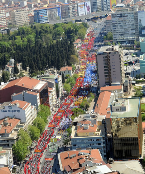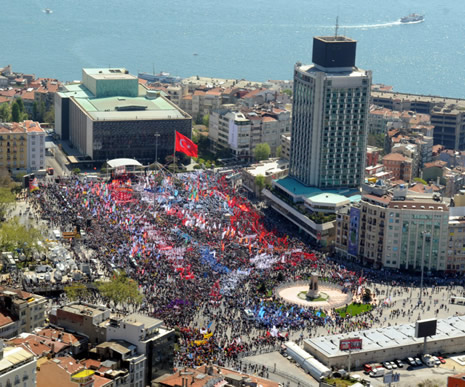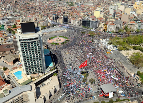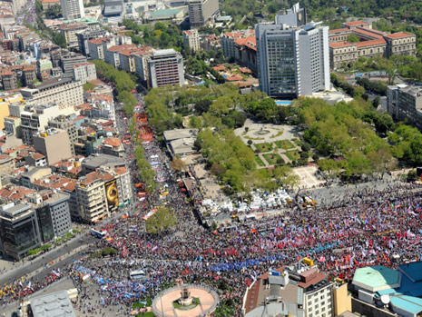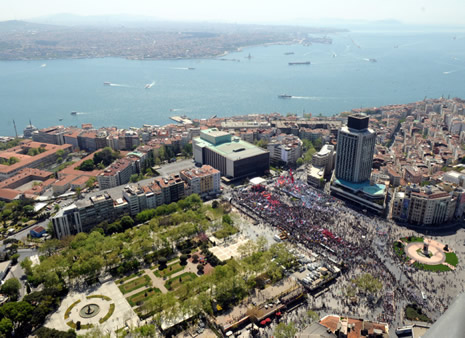 Helikopterde bulunun İstanbu Valisi Muammer Güler ve Emniyet Müdürü Hüseyin Çapkın, güvenlik önlemlerini havadan denetledi. Polis Helikopterinden bulunun kamera da tüm bu anları kaydetti. Şişli, Dolmabahçe ve Şişhane yönünde ayrı ayrı toplanan gruplar, yollarda uzun kuyruklar oluşturdu. Sabahın ilk saatleri boş kalan taksim Meydanı ilerleyen saatlerde hıncahınç doldu. Tüm bu anlar Polis Helikopterindeki kameraca kaydedildi.