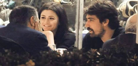 Çift, yapımcıları Faruk Turgut’un sağ kolu Ahsen Tüzün’le beraber yemek yiyip sohbet ederken muhabirlere takıldı.