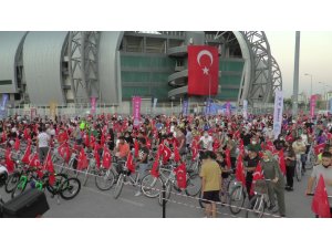 Kadir Has Stadyumundan başlayarak Cumhuriyet Meydanı'na kadar olan 10 kilometrelik parkur ile son bulan bisiklet turuna, toplam bin 200 kişi katıldı. Bisikletli vatandaşlar Türk Bayrakları ve bisikletlerinde bulunan kırmızı-beyaz ışıkları ile parkuru tamamladı.