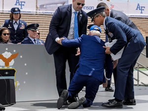 ABD Başkanı'nın geçen yıl Air Force One'a binerken merdivenlerden düşüp Delaware'deki sahil evinin yakınında bisikletinin üzerinde devrildikten sonraki son tökezlemesi bu oldu. Biden her iki olayda da zarar görmedi.
