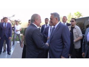 Ziyarette Şanlıurfa Valisi Güngör Azim Tuna, AK Parti Genel Başkan Yardımcısı Hayati Yazıcı'ya yağlı boya tablosu hediye etti.