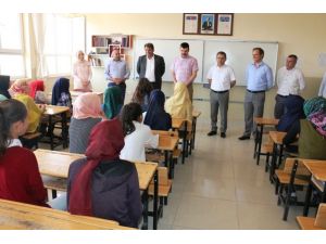 Şanlıurfa'nın Akçakale ilçesinde Kaymakam Selçuk Yosunkaya ve Belediye Başkanı Abdülhakim Ayhan, öğrencilerin karne sevincine ortak oldu.