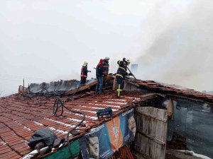 Çorum'un İskilip ilçesinde çıkan yangında 1 ev ve ahır yandı.