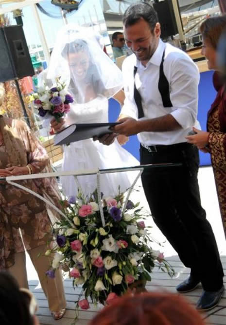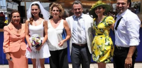 Ali Sunal eşi Gökçe Bahadır ve davetliler, nikahın ardından feribotla Yunanistan'ın Kos Adası’na gitti.
