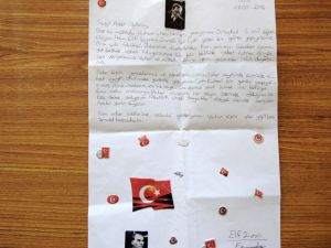 Sizler bizim amcalarımız ve ağabeylerimizsiniz. Sizler sayesinde evimizde rahat uyuyor, okulumuza güvenle gidiyoruz. Çok kutsal bir görev yapıyorsunuz. Anneniz, babanız, eşiniz ve çocuğunuz umut içinde sizi bekliyor. Bunu sakın unutmayın. Vatan sevgisinin her şeyin üzerinde olduğunu bir kez daha anlıyorum... Çok kutsal bir görev yapıyorsunuz... Sizler sayesinde evimizde rahat uyuyor, okulumuza güvenle gidiyoruz. Atatürk şimdi hayatta olsaydı sizinle sonsuza kadar gurur duyardı. Tüm asker abilerime selamlar gönderiyorum. Vatan sizin gibi yiğitlere emanettir. Hoşçakalın."