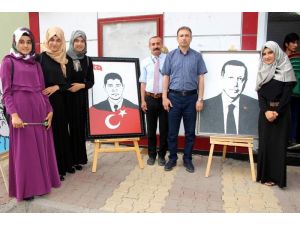 Adıyaman Belediye Konferans Salonunda gerçekleştirilen resim sergisinde 15 Temmuz Şehitleri, Cumhurbaşkanı Recep Tayyip Erdoğan ve Mehmet Akif Ersoy'un çizilmiş resimleri ile figüratif hat sanatı çalışmaları yer aldı.