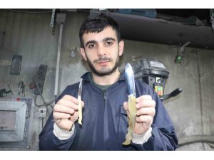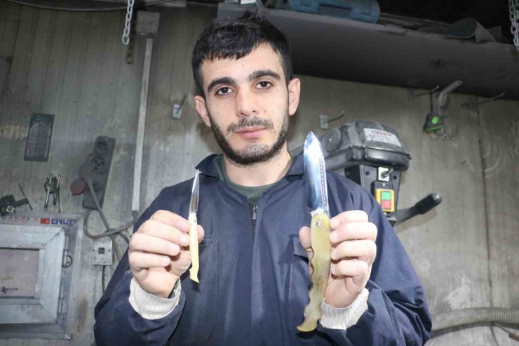 Sivaslı bıçak ustası, 6 yıllık koçboynuzlarından klasik "kadın bacağı bıçağı'na yeni bir görünüm kazandırarak, boyutunu 24 santime çıkarttı.