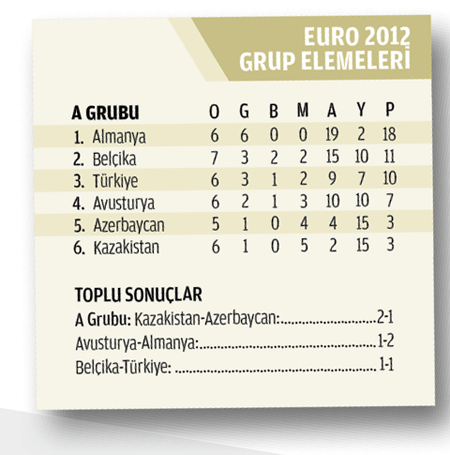 - Hiddink yönetimindeki Milli Takım'ımız, Euro 2012 yolunda 'en iyi ikinci'lik şansını zora soktu. Belçika'dan bir puan alınmasına rağmen oynanan kötü futbol, ilerisi için umut vermedi. Kamuoyu, Hiddink'in konumunu tartışmaya açtı.
