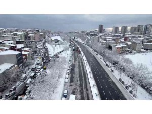 İstanbul'u esir alan kar yağışı nedeniyle sürücüler yolda kaldı. Yol alamayacaklarını anlayan vatandaşlar araçlarını yol kenarına park edip kendi imkanlarıyla geceyi geçirecekleri noktalara gitti. Vali Yerlikaya'nın karla mücadele çalışmalarının daha etkili sürdürülmesi için park edilen araçlarınızı kaldırın çağrısının ardından vatandaşlar Bağcılar O3 Otoyolu'ndaki araçlarının yanına geldi. Sürücüler yolda bırakılan araçlarını aldı. Bağcılar O3 Otoyolu'ndaki son durum drone ile görüntülendi. Görüntülerde otoyolun Edirne istimatinde trafiğin durduğu karşı yönde ise aktığı görüldü.