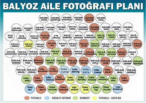 HABERTÜRK, Balyoz Seminerleri'ne katılan subayların toplu fotoğraf çektirmek için duracakları yerleri gösteren şemaları da ele geçirdi. Dava dosyasında da bulunan 3 ayrı şemada, subayların rütbeleri ve kıdemlerine göre duracakları yerler açık açık belirtiliyor.