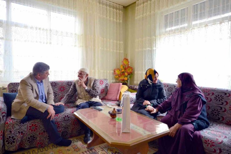 Kütahya'nın Gediz Belediye Başkanı Muharrem Akçadurak, yaşlıları ziyaret ederek dualarını alıyor.