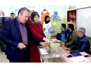 Yunusemre Belediye Başkanı Dr. Mehmet Çerçi, anayasa değişikliği halk oylamasında 23 Nisan İlkokulu 1110 numaralı sandıkta eşi Dr. Melek Çerçi ile birlikte oyunu kullandı.