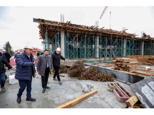 Konya'nın merkez Meram İlçe Belediye Başkanı Mustafa Kavuş, kaba inşaatının yüzde 90'ı tamamlanmış olan "Yaka Sosyal Tesisi'nde incelemelerde bulundu.