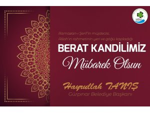 Berat Kandili'nin Allah'a sığınarak günahlardan arınıldığı, ilahi lütuf ve bereketlere erişilen müstesna zaman dilimlerinden birisi olduğunu kaydeden Başkan Tanış, "Ramazan ayının müjdecisi olan, kurtuluş, af ve arınma anlamlarına gelen Berat Kandili; Müslümanların, sınırsız af ve merhamet sahibi Yüce Allah'a sığınarak günahlardan arınma, ilahi lütuf ve bereketlere erişebilme fırsatını yakalayabilecekleri müstesna zaman dilimlerinden birisidir. Bu gece yüce Mevla'mızdan beratımızı isteyerek ellerimizi göğe yöneltirken, ülkemizi ve dünyayı etkisi altına alan korona virüs salgının bir an önce son bulması için dua edelim. Bu duygu ve düşüncelerle Gürpınarlı hemşehrilerimin Berat Kandili'ni tebrik ediyor, bu mübarek gecenin ülkemize ve tüm insanlık âlemine sağlık, mutluluk ve huzur getirmesini yüce Rabbimden niyaz ederim" dedi.