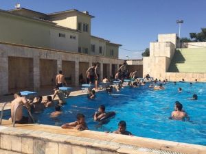 Batman Gençlik Hizmetleri ve Spor İl Müdürlüğü bünyesinde hizmet veren olimpik yüzme havuzu, serinlemek isteyen ve eğitim gören kursiyerlerle dolup taşıyor.