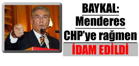 Eski Başbakan Adnan Menderes'in mezarını ilk ziyaret eden CHP lideri olan Kemal Kılıçdaroğlu, "Buraya ezber bozmaya geldim. Tarihten dersimizi aldık" dedi. 51 yıl sonra ilk kez bir CHP Genl Başkanı Menderes'in kabrini ziyaret etmiş oldu. İşte yeni CHP'nin bu adımına eski CHP'nin simge ismi Baykal'dan uyarı mahiyetinde bir açıklama geldi. Eski CHP Genel Başkanı ve Antalya Milletvekili Deniz Baykal, ''Bilinmelidir ki Adnan Menderes'i CHP idam ettirmemiştir, Menderes CHP'ye rağmen idam edilmiştir. Bu tarihi bir gerçektir'' dedi.