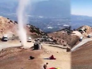Ölüdeniz Mahallesi’ndeki Babadağ Hava Sporları Rekreasyon Merkezi’nin 1800 metre pistinde dün saat 12.00 sıralarında hava güzelken bir anda halkın ’kum şeytanı’ adını verdiği hortumoluştu.