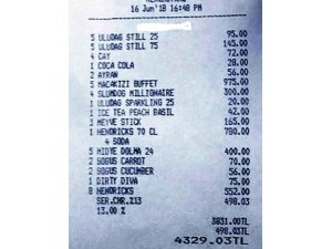 Fatura ayrıntısında bir porsiyon bifteğe 195 lira, kolaya 28, 4 kişilik 250 ml. limonataya 19, bir 4 bardak çaya ise 72 liraya ödendiği görüldü. 24 adet midye dolma için 400 lira ödeyen müşteri, 1 adet söğüş salatalığa 28 lira, 1 adet havuca ise 35 lira ödedi.