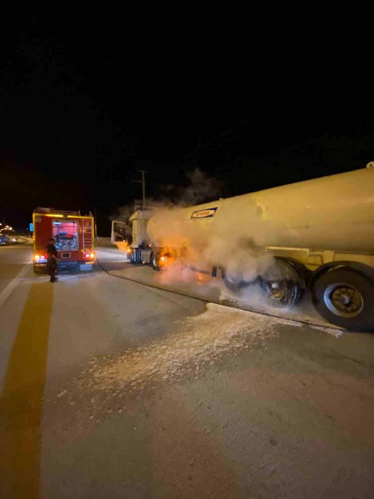 Yangın, saat 22.15 sıralarında Antalya-Burdur karayolunda meydana geldi. Edinilen bilgilere göre, Antalya istikametine gitmekte olan 34 TZ 597 plakalı bir lojistik firmasına ait olduğu öğrenilen tankerin balatalarından dumanlar yükselmeye başladı. Araç sürücüsü, 112 Acil Çağrı Merkezi'ni arayarak ihbarda bulundu. İhbar üzerine bölgeye polis ve itfaiye ekipleri sevk edildi. Araçta çıkan yangın ekiplerin müdahalesinin ardından kısa sürede söndürüldü.