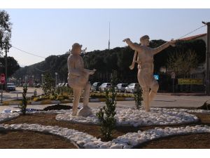 Burhaniye Belediyesi Park Bahçeler Müdürlüğü şehrin çehresini değiştirmeye devam ediyor. Karayolları Müdürlüğünün Burhaniye-Ören kavşak düzenlemesi kapsamında, Burhaniye tarafına yapılan döner kavşak üzerine, Burhaniye Belediyesi tarafından, Saz Çalan ve Oynayan Efe Heykelleri yerleştirildi.