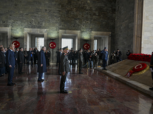 Cumhurbaşkanı Erdoğan, kırmızı beyaz karanfillerden oluşan ay yıldızlı çelengi, Atatürk'ün mozolesine bıraktı.