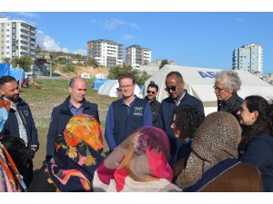 AB Türkiye Delegasyonu Başkanı Büyükelçi Landrut, depremzedelerin sorunlarını dinledi, çocuklarla fotoğraf çektirdi.