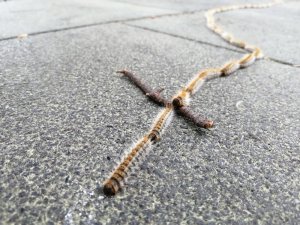 Samsun'da çam ağaçlarındaki keselerden düşen çam kese böcekleri (tırtılları), yaptıkları uzun konvoylar ile ilginç görüntüler oluşturdu.