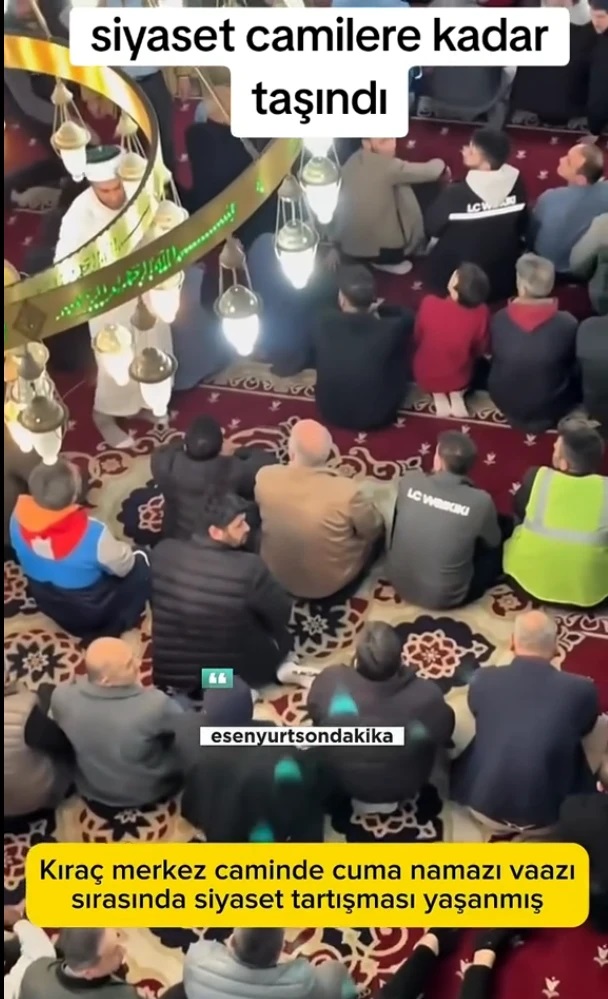 'Esenyurt Son Dakika' adlı sosyal medya hesabından paylaşılan videoya göre görüntüler, İstanbul Esenyurt'taki Kıraç Camisi'nde kaydedildi. Görüntülerde bir kişinin "Polise taş atmaya devam ediyorlar" dediği duyuldu. Cemaatin tartışan kişileri sözle yatıştırmaya çalıştığı görülürken caminin imamının da devreye girdiği kayda girdi.