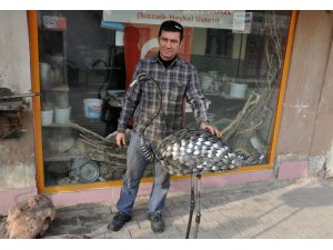 Uzun zamandır mozaikle ve hurda ile çeşitli heykeller yapan Mervan Altınorak, geyik ve at heykelinin büyük ilgi görmesiyle bu defa da motosiklet benzin deposu ve yemek çatalı, su borusu, oto yedek parçası ve yay kullanarak flamingo heykelini bir hafta içerisinde yaptığını söyledi.