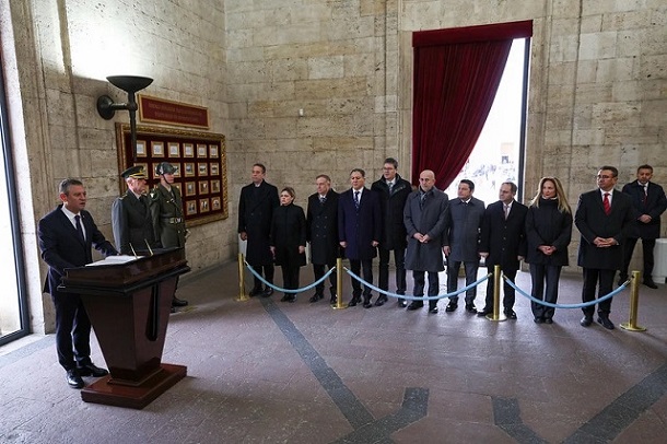 CHP Genel Başkanı Özel, yeni PM ve YDK üyeleriyle birlikte yapılan toplantının ardından Anıtkabir'e ziyarette bulundu. Özel, Anıtkabir'de bulunan hatıra defterine Atatürk'e hitaben “Milletimiz sizin kurduğunuz Cumhurbaşkanlığı makamına aday olan Ekrem İmamoğlu ve arkadaşlarımıza karşı darbe girişimine izin vermemiştir” yazdı.