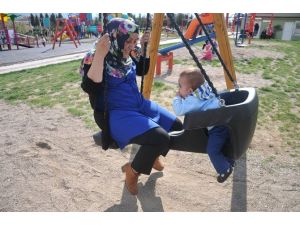 Bozüyük'teki parklarda yerini alan ebeveyn çocuk salıncağı ilgi odağı oldu.