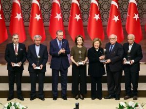 Cumhurbaşkanı Erdoğan, Cumhurbaşkanlığı Külliyesinde düzenlenen "Kültür ve Turizm Bakanlığı Özel Ödülleri Törenine" katıldı. Burada bir konuşma yapan Erdoğan, "Kültür ve Turizm Bakanlığımızın, 2016 Yılı Özel Ödüllerini takdim edeceğiz. Özellikle Nesrin Hanım'ı çocukluk yıllarımızdan itibaren dinlememiz hasebiyle, bugün adeta hayat hikayemizi burada çok daha canlı bir şekilde gündeme getirmiş olduk. Şiir ve Çeviri Dalında Cahit Koytak, Tiyatro alanında Kenan Işık. Geçirdiği ağır rahatsızlık sebebiyle tedavisi sürüyor ve evinde ziyaret edemediğimden dolayı kendimi suçlu hissediyorum. Bu ödül töreninden sonra ziyaret imkanı bulacağım. Edebiyat dalında Mehmet Doğan kardeşimizi, kurum olarak da İslam Bilim ve Teknoloji Tarihi Müzesini ve elbette onu ülkemize kazandıran Prof. Dr. Fuat Sezgin hocamızı tebrik ediyorum. Aralık ayında Necip Fazıl Ödülleri, Cumhurbaşkanlığı Kültür Sanat Büyük Ödülleri, ardından TÜBİTAK ve TÜBA ödülleri törenlerine katılarak kültür, sanat ve bilim adamlarımıza ödüllerini bizzat verme imkanı buldum. Türkiye'nin her alanda yeni değerler yetiştirmesinin ancak var olan değerlerine sahip çıkması ile mümkün olduğuna inanıyorum. Bu sebeple ödül törenlerine katılmaya özellikle dikkat ediyorum. Bizim medeniyetimizde, kültürümüzde, kültür ve sanat; beşerin yaratıcının her eserinde müşade ettiği güzellikleri çeşitli yol ve yöntemlerle ortaya koymasının vasıtasıdır. Bilgiyi hikmet ile taçlandırıp, irfana ulaştırmadıkça hiçbir şeyi yerli yerine oturtamayız. Doğuştan gelen yetenek sizi kabiliyetli kılabilir. Bu bilgiyi ve kabiliyeti nereye yönlendireceğinizi bilemezseniz, kendiniz içinde mensubu bulunduğunuz toplum içinde, insanlık içinde kalıcı eserler ortaya koyamazsınız. Sanat, kültür ve bilimle insanların dünyasında açılan pencereler, bizi yeni dünyalara davet ederken, geçmişten geleceğe bir bağda kurar. İnsanlığın mirası, her neslin üzerine koyduğu yeni değerler ile gelişir, büyür, tekamül eder. Bize düşen bu ortak mirasa en büyük katkıyı yapmaktır. Ecdadımız bunu yapmış. Matematikten felsefeye, mimariden edebiyata, hukuktan sağlığa kadar insanlığın bugün sahip olduğu birikimin temeline baktığımızda hep ecdadımızı görürüz. Millet ve devlet olarak hedefimiz işte bu mirasın üzerindeki külleri üflemek, yeniden öncü ve önder konuma getirmektir. Unutmamalıyız ki, kültür ve sanatı küçümseyen toplumlar kaybetmeye mahkumdur. Bugün Batı medeniyeti, sadece teknolojik ve bilimsel üstünlüğü ile değil, aynı zamanda kültür ve sanat üretimindeki rolü ile dünyayı yönlendirmektedir. Bu iki unsur birbirini destekleyen, birbirini üreten mahiyete sahiptir. Teknolojiyi üreten bunun vasıtası ile kültür ve sanata da hakim olur. Gençlerimizin dinlediği müziğe, seyrettikleri filmlere, okudukları kitaplara kadar hayatlarının her safhasında bunların izini görmek mümkündür. Şayet medeniyetimizin ışığını yeniden yükselteceksek, bunun yolu her alanda gayret göstermekten, üretmekten, eser ortaya koymaktan geçiyor" diye konuştu.