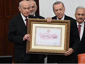 Erdoğan, Bahçeli’den mazbatasını aldı, ardından Meclis Genel Kurulu'nda yemin ederek göreve başladı.