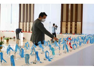 Cumhurbaşkanı Recep Tayyip Erdoğan'ın başbakanlık döneminden itibaren şehir hastanelerinden havalimanlarına, otoyollardan enerji santrallerine kadar yüzlerce eserin açılışında kullandığı 800'ün üzerinde makas, Cumhurbaşkanlığı Külliyesi'ndeki Kongre ve Kültür Merkezi'nde sergileniyor. Sergide geçtiğimiz eylül ayında Amerika Birleşik Devletleri'nin New York şehrinde inşa edilen Türkevi'nin açılışında kullanılan makas da yer alıyor.