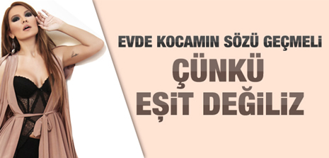 - 'Kadın erkekle eşittir,' diyenlerden değilim. Öyle bir şey yok! Kadın elini tutmaz adamın. Vücut diline bakan uzmanlar diyor ya, çiftlerin el ele tutuşmalarından iplerin kimin elinde olduğu anlaşılıyor. Geçen bir kız arkadaşıma 'Adamın elini niye sen tutuyorsun, niye sen öndesin?' dedim. Çünkü fotoğrafta bile anlaşılıyor kimin güçlü olduğu. Tamam güçlü kadınım, eyvallah. Atarlıyım, giderliyim ama ben yine de her yerde kocamın sözü geçsin isterim. Ne kadar güçlü kadın olursan ol, dünyayı yönetecek kadar güçlü ol, Amerikalı ol, film yıldızı ol, fark etmez. Görmüyor musun, Angelina Jolie bile adamın gerisinde duruyor! Kadın erkeğin gerisinde durmalı. Dünyanın en güçlü kadını da olsan bir erkeğin gücüne, şefkatine, sahiplenmesine, elini tutmasına ihtiyacın vardır. Kimse 'İstemem,' demesin.