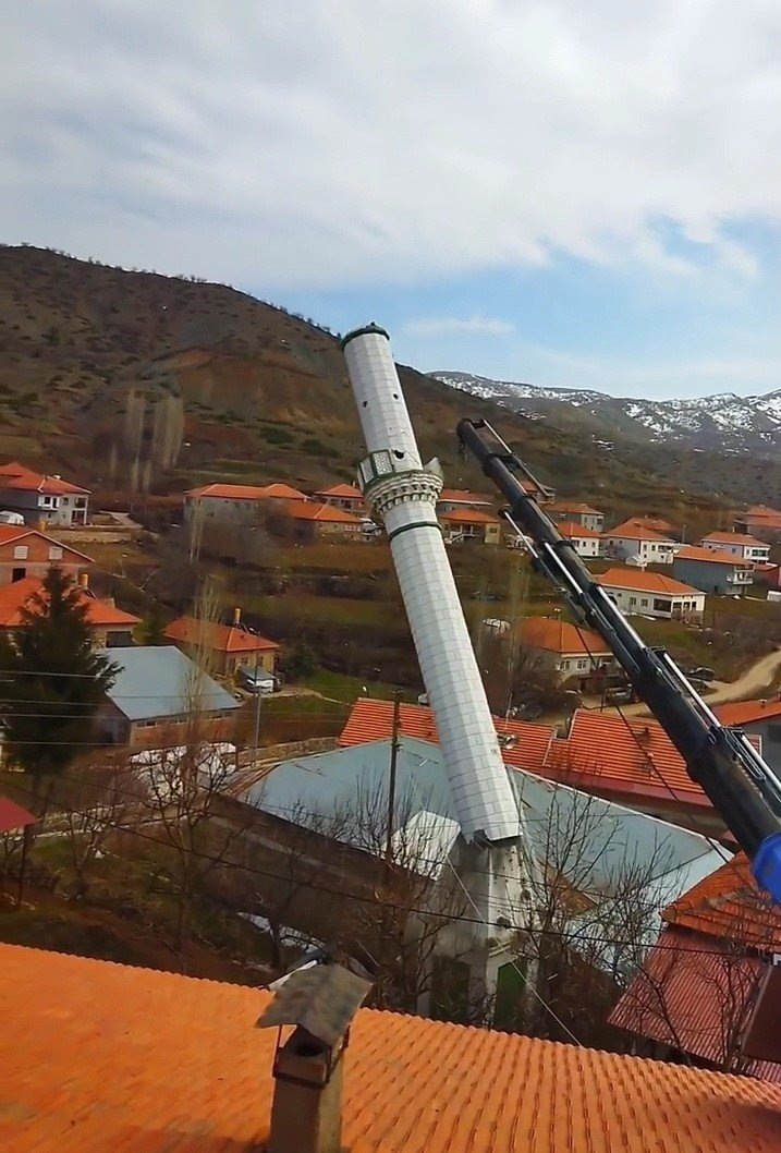 Adıyaman'ın Çelikhan ilçesinde depremde hasar gören bir caminin minaresi kontrollü bir şekilde yıkıldı.