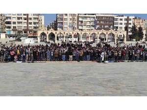 Kahramanmaraş merkezli depremlerde hayatını kaybedenler için Şanlıurfa'da öğle namazını müteakip yüzlerce Müslüman, Topçu Meydanı'nda gıyabi cenaze namazı kıldı.