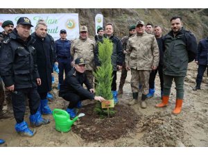 Giresun Valisi Enver Ünlü ise "Yüreğimiz buruk olsa da bugün can suyunu verdiğimiz, dalları göğe, kökleri derine gidecek her bir fidanla maziyi geleceğe taşımanın ve deprem şehitlerinin aziz hatıralarını yaşatmanın erdemini paylaşıyoruz" dedi.