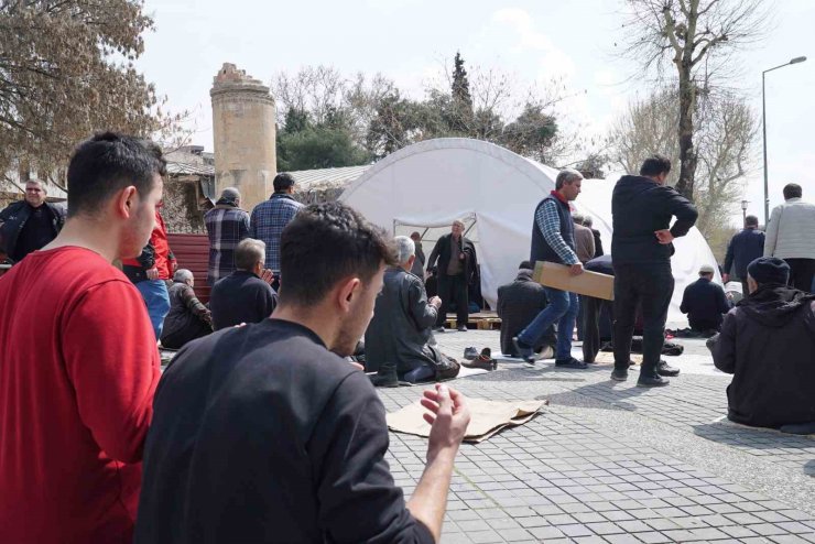 Çadır mescitte yer bulamayan bir kısım cemaat, namazını dışarıya serilen hasırların üzerinde eda etti. Namazın ardından depremde hayatını kaybedenler için dua edildi.