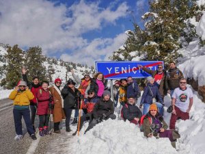 Mersin'in Silifke ilçesinde Poyraz Doğa Gezginleri üyeleri ilçenin yüksek kesimlerine yağan kar yağışı sonrası yürüyüş etkinliği düzenledi.