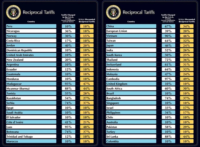 Beyaz Saray’ın Gümrük Vergisi uygulayacağı ülkeler listesi şöyle: