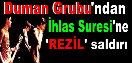 Rock grubu Duman'ın, çıkardığı son albümde seslendirdiği "Rezil" adlı şarkıda İhlas suresinin "Lem yelid ve lem yuled" ayetini alaya alarak ortalığı karıştırdı. Şarkıda bulunan "Lemyelit ve löp yutar" sözleri ile İhlas Suresi'nin dejenere edildiğini öne sürülürken, grubun bu ayıbına tepki gösterenler ünlü rock grubunu mail yağmuruna tutmaya devam ediyor.