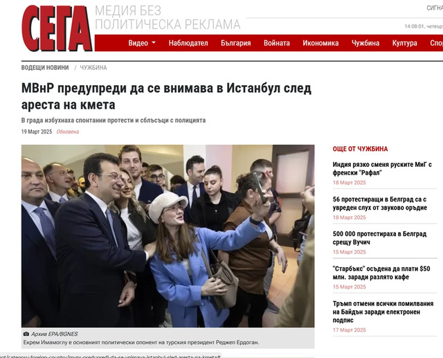 Dışişleri Bakanlığı, İstanbul'a gitmeyi planlayan Bulgar vatandaşlarına, bugün itibarıyla Türk makamlarının şehirdeki bazı yollarda, toplu taşıma duraklarında ve metroda hareket kısıtlaması getirdiğini bildiriyor.