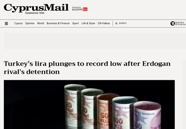 Erdoğan rakibinin tutuklanmasının ardından Türkiye'nin lirası rekor düşük seviyeye geriledi.