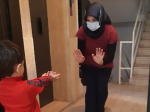 Isparta Şehir Hastanesi'de yeni tip koronavirüs (Kovid-19) servisinde görevli hemşire Ebru Çelik, 25 gündür dokunamadığı oğluna özlemini sadece kapıdan görerek gidermeye çalışıyor.