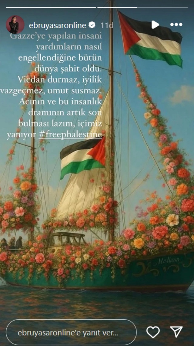 Ünlü şarkıcı Ebru Yaşar, sosyal medya hesabından yaptığı paylaşımla Gazze'deki insanlık dramına dikkat çekerek şu ifadeleri kullandı: