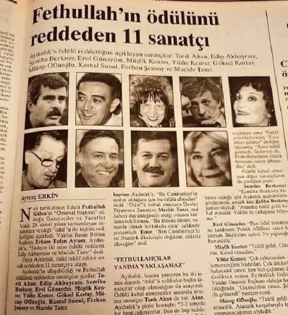 FETHULLAH GÜLEN'İN ÖDÜLÜNÜ REDDEDEN 11 SANATÇIDAN BİRİYDİ