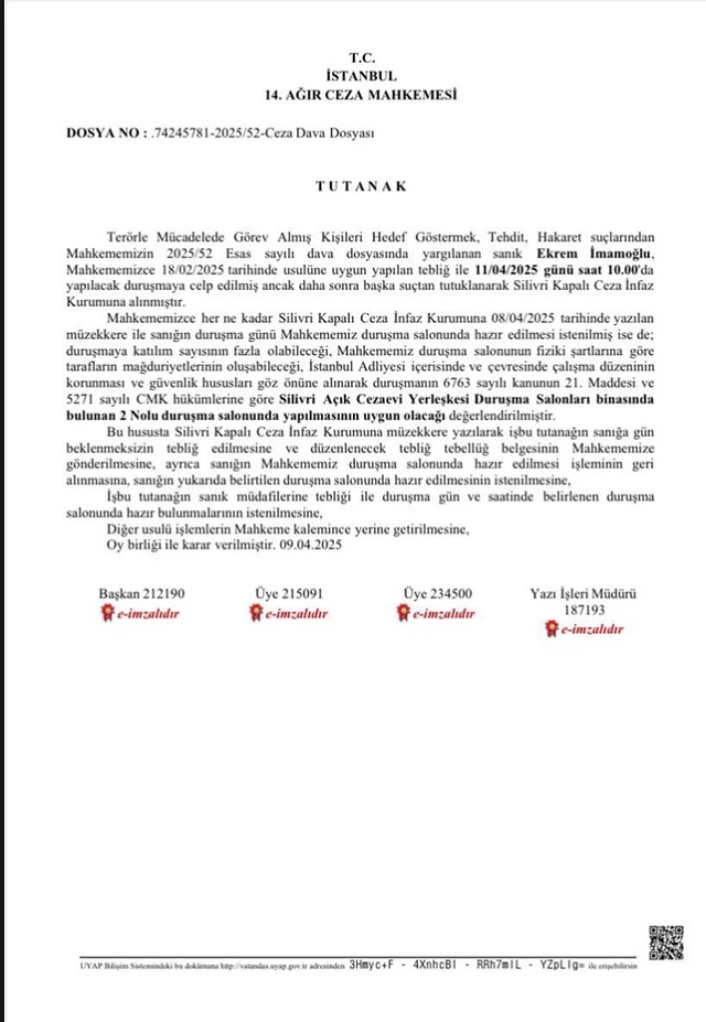 "Ekrem Başkan’ın Akın Gürlek’e yönelik sözleri gerekçe gösterilerek 11 Nisan 2025’te Çağlayan Adliyesi’nde yapılacak duruşması, Silivri Açık Ceza Yerleşkesi 2 Nolu duruşma salonuna alındı. Ben bu salonu Ergenekon duruşmalarından hatırlıyorum. Filmin başı aynı, sonu da aynı olacak!"
