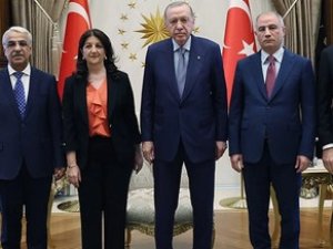 "Cumhurbaşkanımız Sayın Recep Tayyip Erdoğan, bugün saat 15.00'te DEM Parti TBMM Başkanvekili Pervin Buldan ve beraberindeki heyeti Cumhurbaşkanlığı Külliyesi'nde kabul edeceklerdir. Kabulde 'Terörsüz Türkiye' hedefine ulaşmak için yürütülen çalışmalar ele alınacaktır." DEM Parti heyeti Cumhurbaşkanı Erdoğan ile yapılacak olan görüşme önces açıklamalarda bulundu.